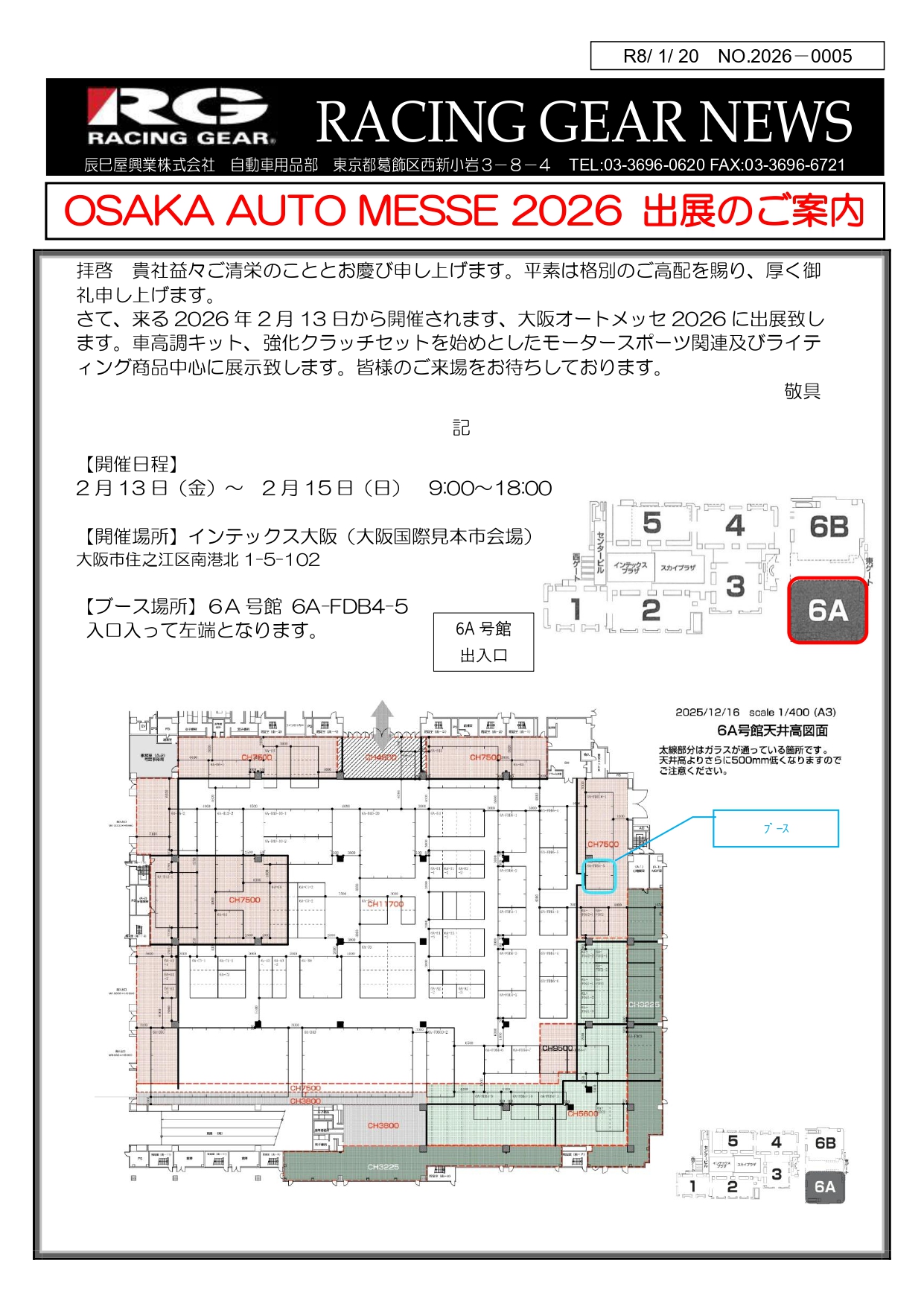 来る大阪オートメッセ2026におきまして、レーシングギアとしてブース出展を行います。