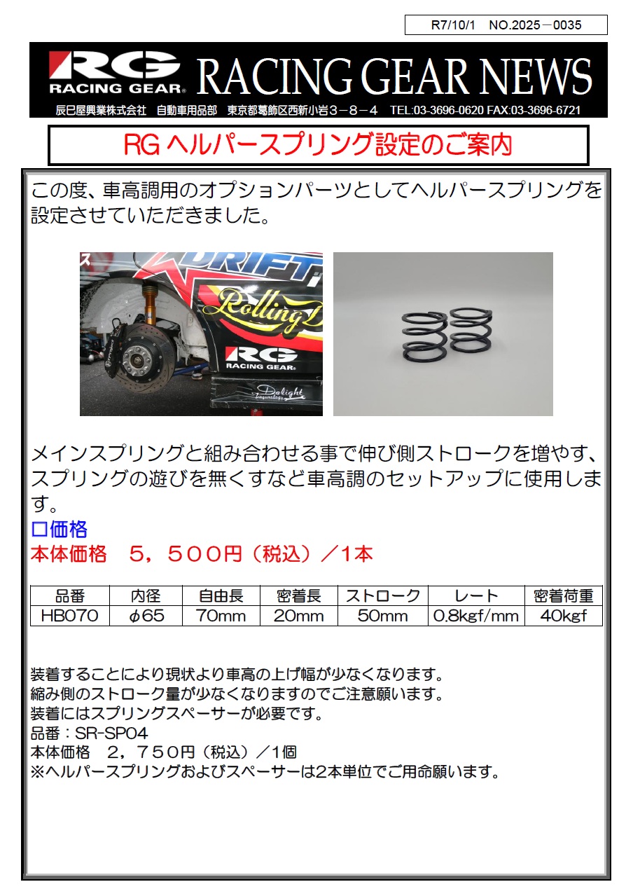 【新商品】車高調用オプションパーツ【ヘルパースプリング】